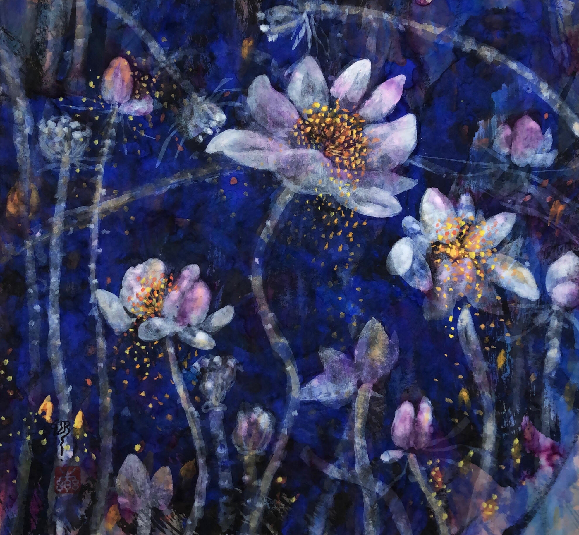 Dance of Lotus I - SOLD © 2015 Tusche & Gouache auf Reispapier 68x68cm